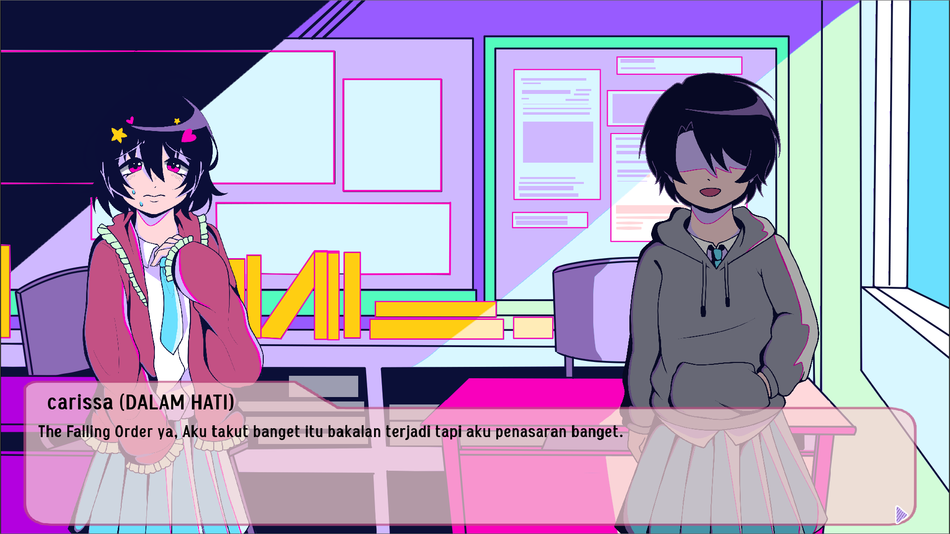 Carissa, a high school student, hears about The Falling Order from a friend, a strange game no one fully understands. One moment she’s holding her phone, the next she’s trapped inside it. An AI controls the game, dropping blocks for its own amusement, turning the space into a constant threat. As Carissa learns to survive, a mysterious cube appears, guiding her through the rules, the challenges, and the story hidden inside the game. Together, they move forward, avoiding falling blocks, and searching for a way out.