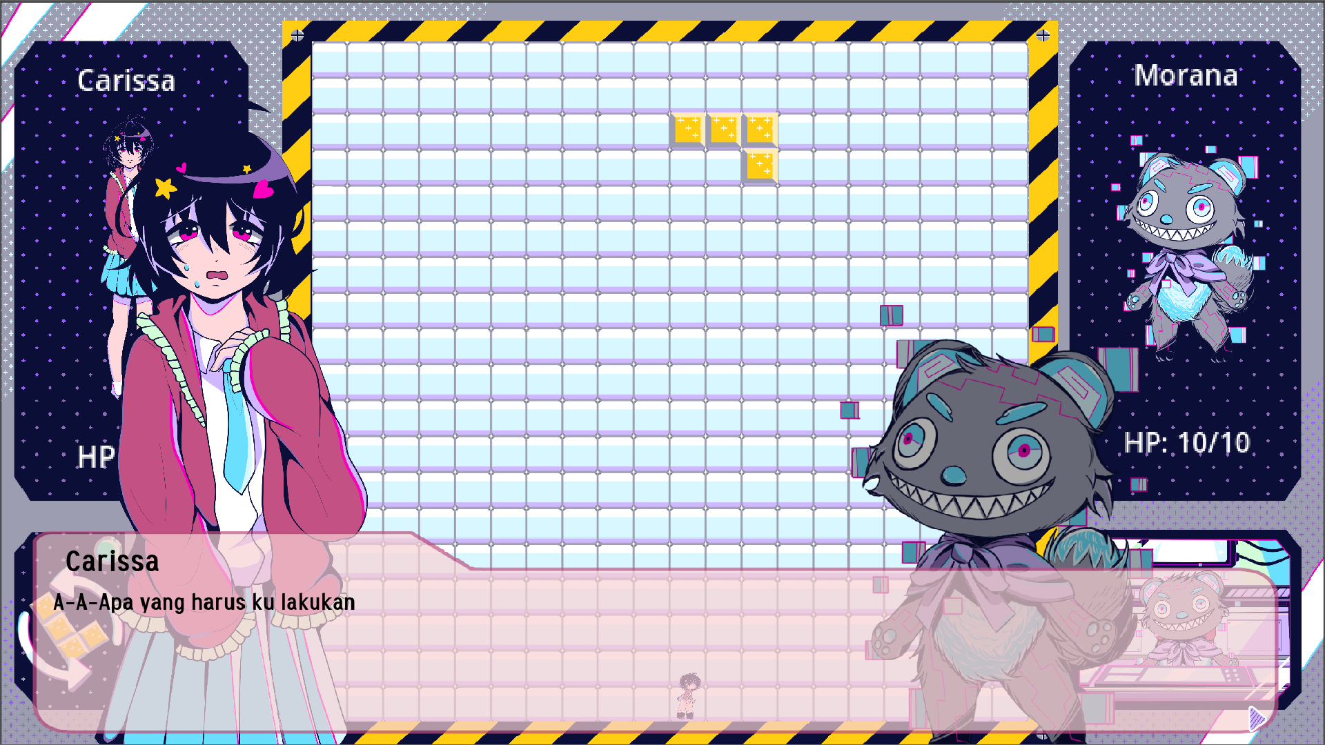 • Line-Based Energy: Clear full horizontal lines to erase blocks and gain energy to attack Morana.